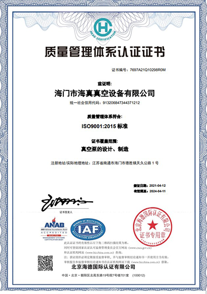 質(zhì)量管理體系認(rèn)證證書(shū)